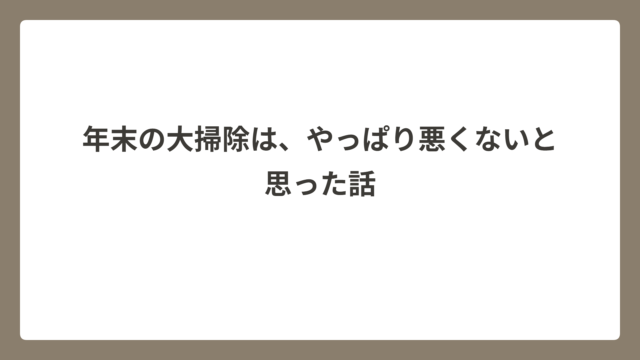 お片付け・インテリア 年末の大掃除は、やっぱり悪くないと思った話 2025年12月28日 よもぎ 年末ということで、少しずつ部屋の大掃除をしています。 普段からこまめに片付けはしている方なので、いわゆる「物を減らすための大掃除」は、そこまでやることが多いわけではありませ …