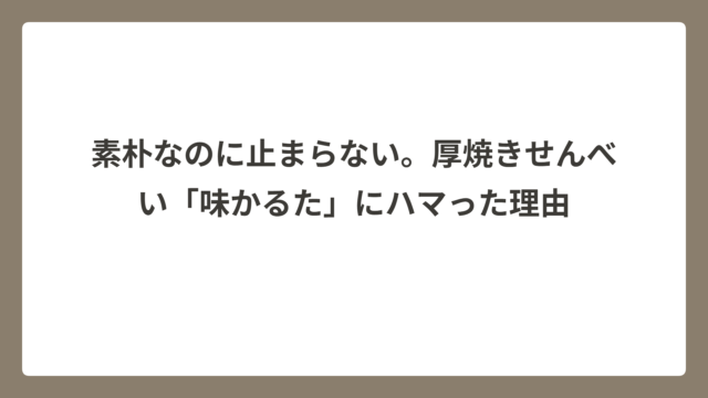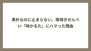 食べ物・飲み物 素朴なのに止まらない。厚焼きせんべい「味かるた」にハマった理由 2025年12月30日 よもぎ 最近ハマっているおやつが「味かるた」というおせんべいです。 派手さはないのに、なぜか何度も手に取ってしまう。 その理由は、 …