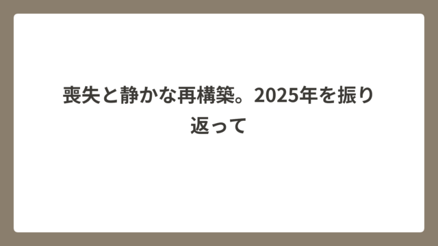 コラム・日記 喪失と静かな再構築。2025年を振り返って 2025年12月31日 よもぎ 2025年の終わりに、少し立ち止まってこの一年を振り返ってみようと思います。 正直に言えば、今年は明るい出来事よりも、喪失感の方が強く残る一年でした。 大切な …