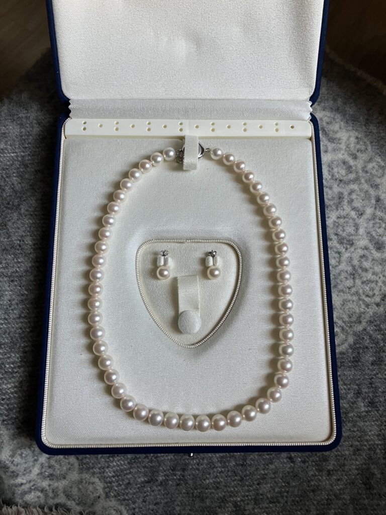 冠婚葬祭からデイリーまで使える定番ジュエリー、8.0mmのアコヤパールネックレス&ピアス(ムーンレーベル)をご紹介します。