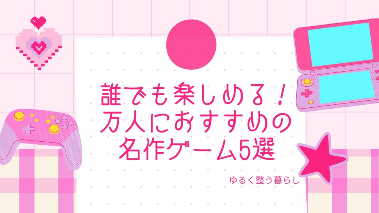 ゲーム 【ゲーム紹介】初めてのSwitchにおすすめ!ゲームが苦手でも楽しめる名作ソフト5選 2025年11月12日 しんや ゆるく整う暮らし はじめに 「誰にでもおすすめできるゲーム」って、意外と少ないですよね。操作が難しすぎたり、ストーリーが重すぎたり……。 今回は …