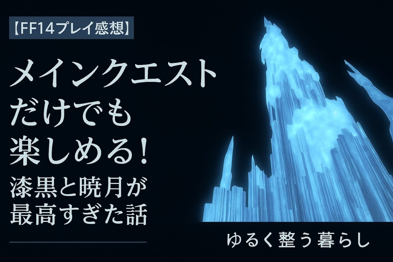 ゲーム 【ゲーム感想】MMOに向いてない人がFF14新生から黄金までソロプレイしてみた 2025年11月15日 しんや ゆるく整う暮らし FF14に興味本位で挑戦してみた FF14(ファイナルファンタジーXIV)って「シナリオが面白い」と聞きつつ、私はこれまでMMOをプ …