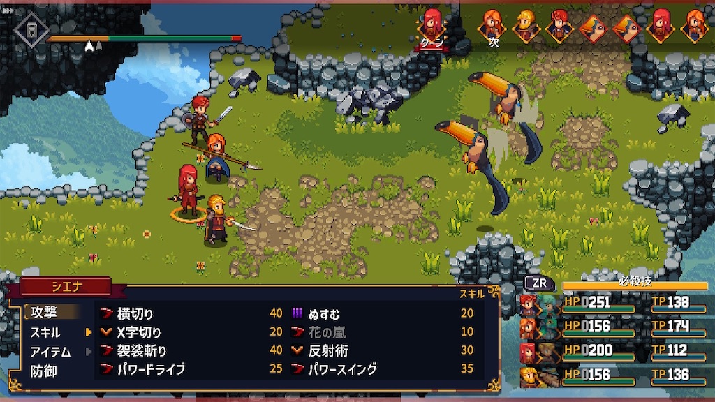 グレン、レニー、シエナ、ビクターで進めていったのですが、強化や弱体もしつつ、シエナやレニーで殴りまくるという戦法で最後まで進めました。